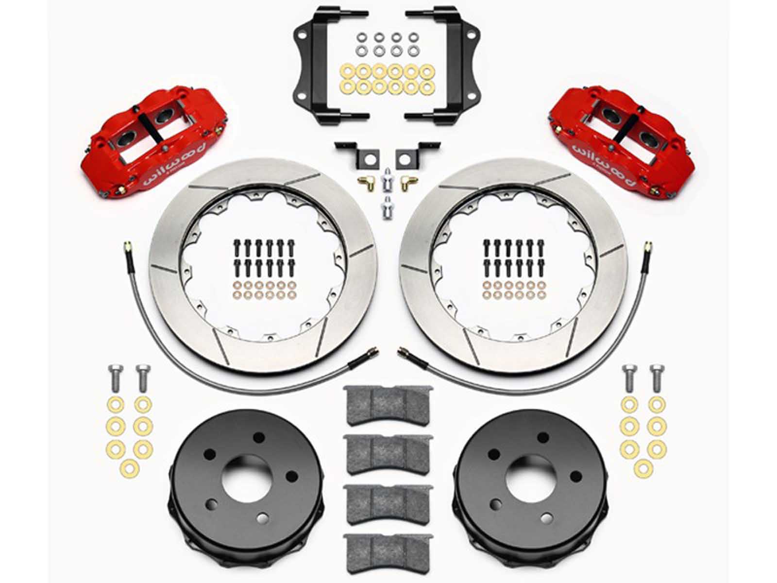Red Calipers. Please see separate listing for Black Caliper system. Installation of Wilwood Disc Brake Kits may affect the wheel offset and will require a larger diameter wheel for caliper clearance. All returned orders are subject to a re-stocking fee, so please make sure your wheels will work before ordering. Shipping Promotions are valid in the Lower 48 States only. For all other areas, please contact us for a discounted rate quote.