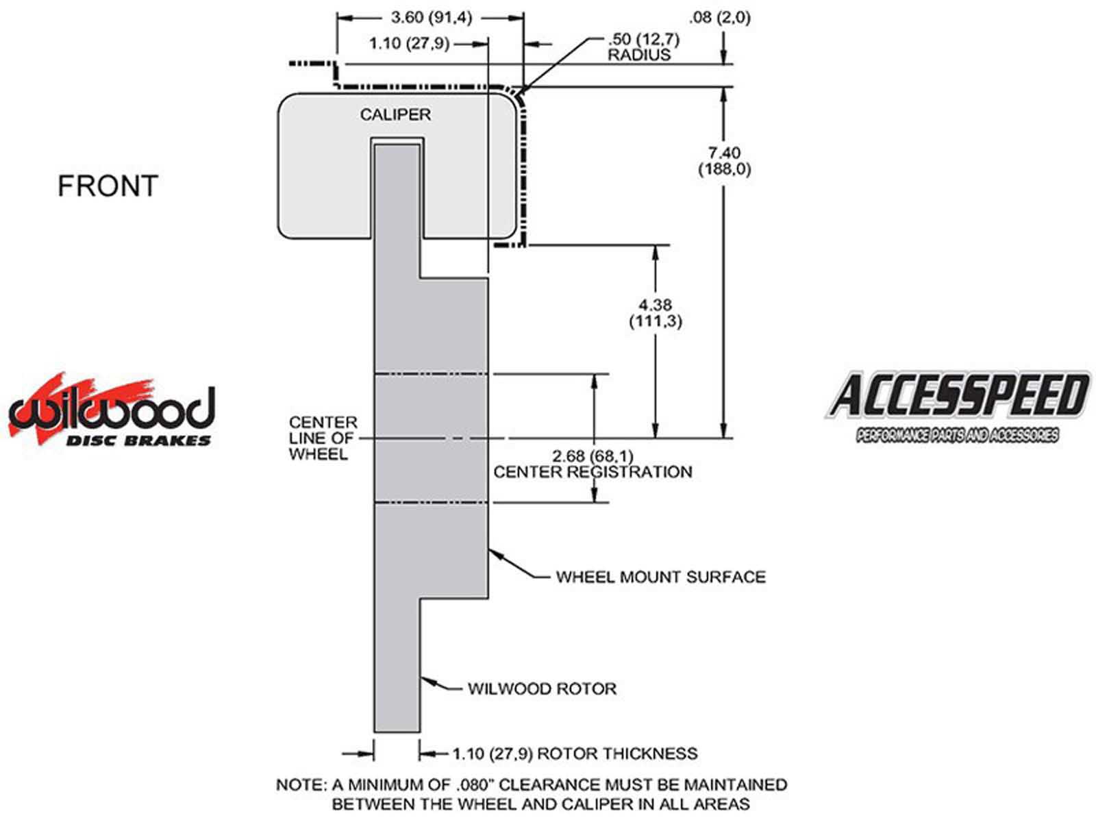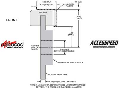 Red Calipers. See separate listing for the black caliper system. Installation of Wilwood Disc Brake Kits may affect the wheel offset and will require a larger diameter wheel for caliper clearance. All returned orders are subject to a re-stocking fee, so please make sure your wheels will work before ordering. Shipping Promotions are valid in the Lower 48 States only. For all other areas, please contact us for a discounted rate quote.