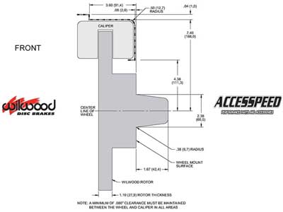 Installation of Wilwood Disc Brake Kits may affect the wheel offset and will require a larger diameter wheel for caliper clearance. All returned orders are subject to a re-stocking fee, so please make sure your wheels will work before ordering. Shipping Promotions are valid in the Lower 48 States only.  For all other areas, please contact us for a discounted rate quote.