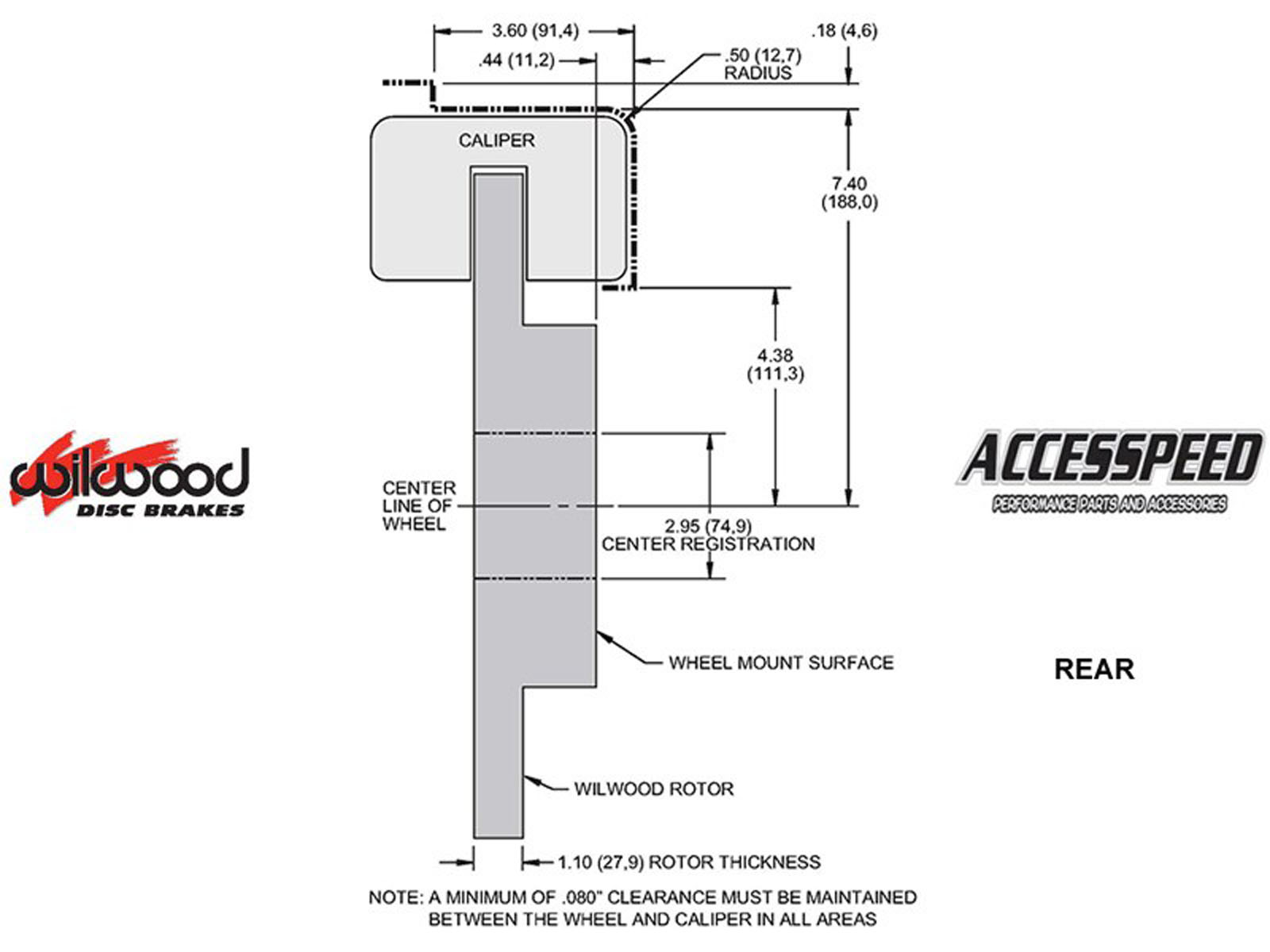 *This Brake Kit may require 17-inch or larger wheels or wheels spacers for proper fit. Please refer to the wheel clearance diagram to check to see if it will fit your specific wheel.