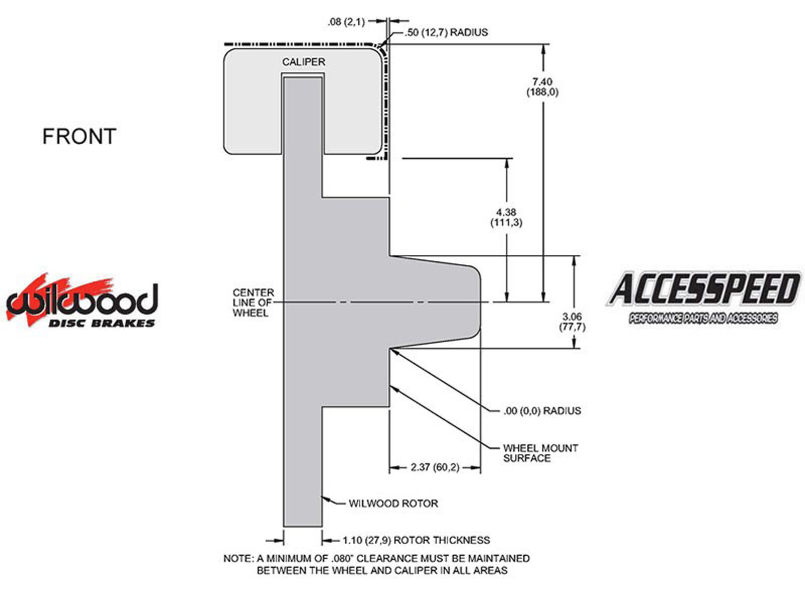 *This Brake Kit may require 17-inch or larger wheels or wheels spacers for proper fit. Please refer to the wheel clearance diagram to check to see if it will fit your specific wheel.