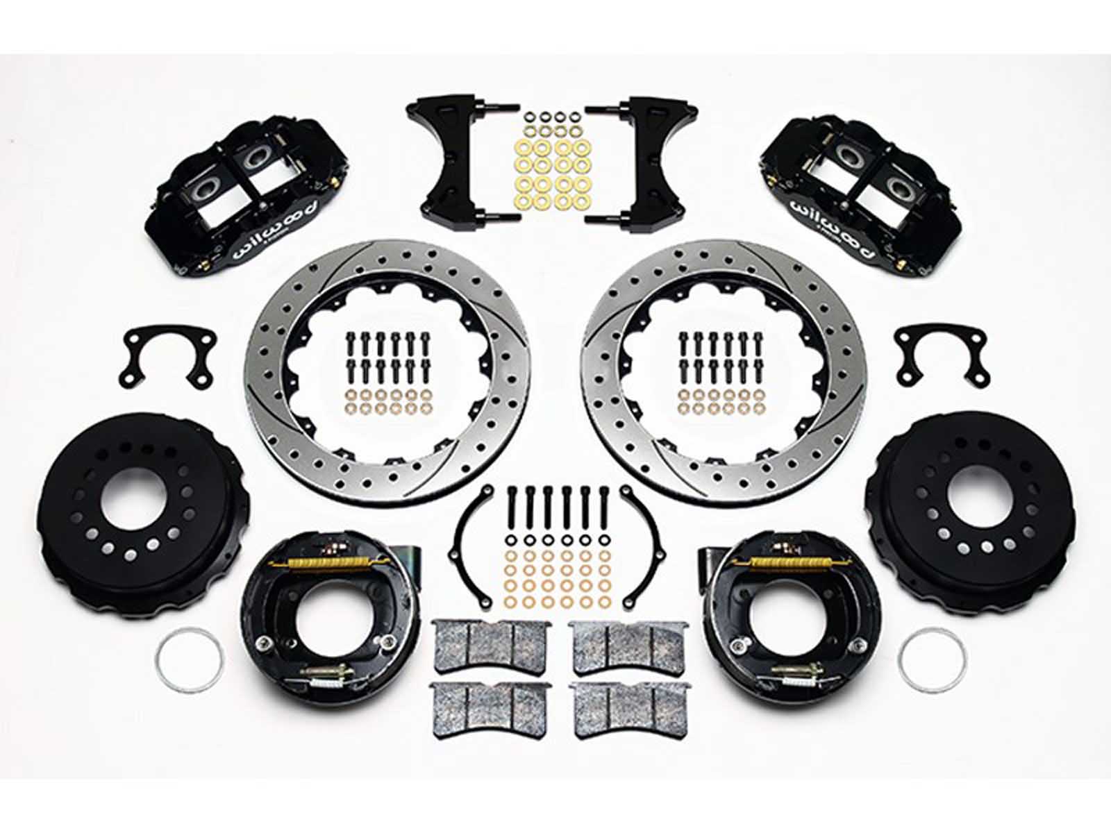 Wilwood 140-14878-D Forged Narrow Superlite SL4R Rear 14" Big Brake Kit With Black Calipers & Drilled Rotors, Fits Various 1963-1989 Dodge, 1965-1989 Chrysler & 1965-1983 Plymouth Models With 8.75" & 9.75" Mopar/Dana 60 Rear Ends and 2.36" Axle Offset