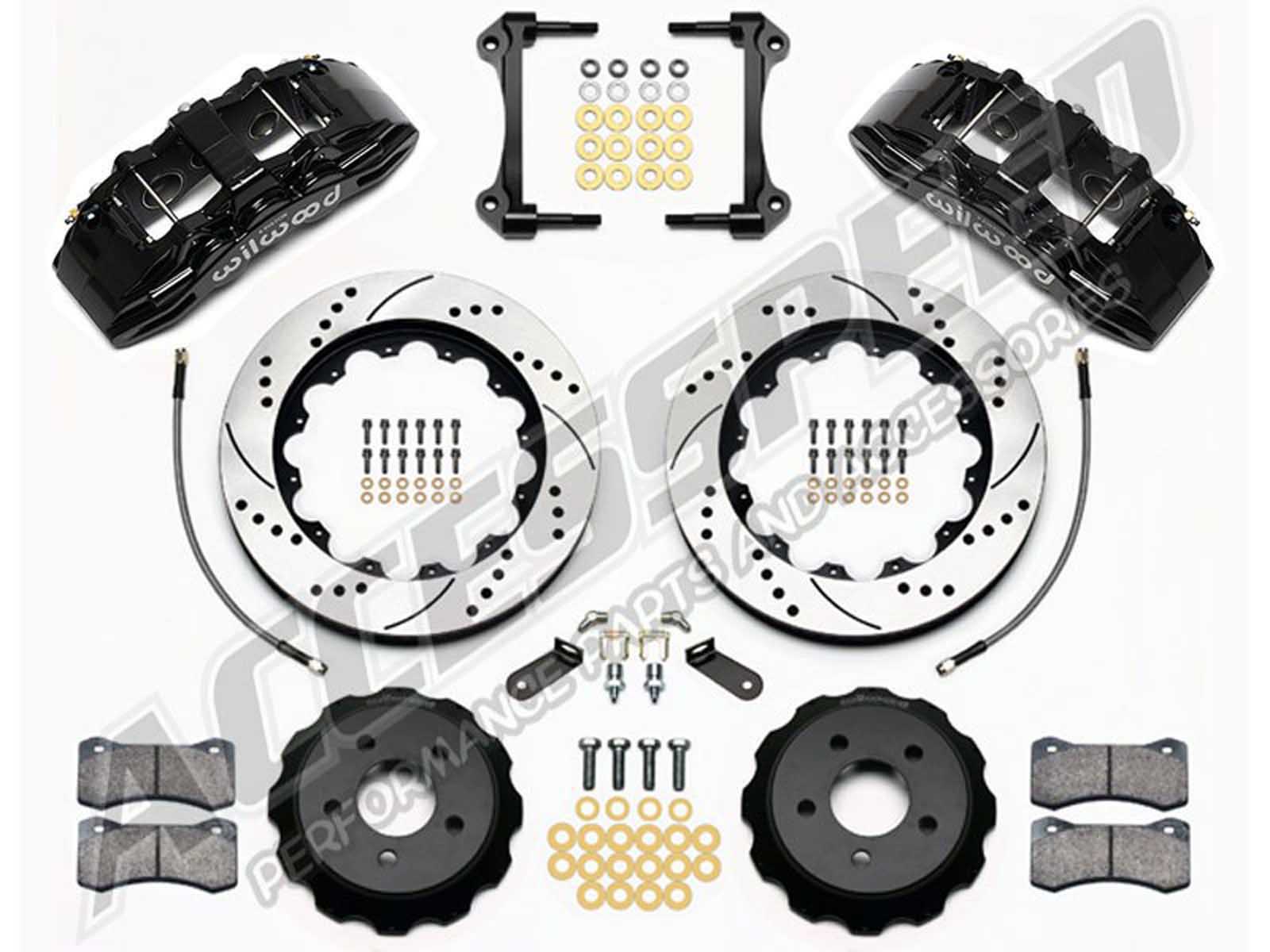 Wilwood SX6R calipers were designed for the specific purpose of providing high capacity braking with large diameter rotors for extreme duty and race vehicles. It is the largest dual purpose caliper Wilwood has produced, providing big brake performance for show and dual purpose street and track vehicles. Offering additional enhanced braking with wheel and tire upgrades. These massive Wilwood SX6R Big Brake Kits from Accesspeed are fully compatible with OE master cylinder output and ABS function. Directional 72 staggered vane 14.00” to 15.00”rotors provide maximum cooling for sustained high heat durability. Accesspeed includes Wilwood stainless brake lines in this kit.