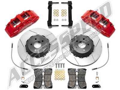 Wilwood SX6R calipers were designed for the specific purpose of providing high capacity braking with large diameter rotors for extreme duty and race vehicles. It is the largest dual purpose caliper Wilwood has produced, providing big brake performance for show and dual purpose street and track vehicles. Offering additional enhanced braking with wheel and tire upgrades. These massive Wilwood SX6R Big Brake Kits from Accesspeed are fully compatible with OE master cylinder output and ABS function. Directional 72 staggered vane 14.00” to 15.00”rotors provide maximum cooling for sustained high heat durability. Accesspeed includes Wilwood stainless brake lines in this kit.
