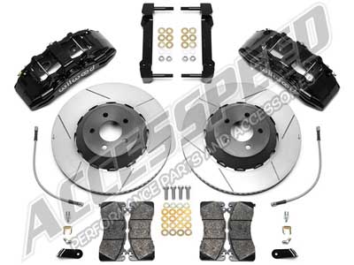 SX6R calipers were designed for the specific purpose of providing high capacity braking with large diameter rotors for extreme duty and race vehicles. It is the largest dual purpose caliper Wilwood has produced, providing big brake performance for show and dual purpose street and track vehicles. Offering additional enhanced braking with wheel and tire upgrades. Kits are fully compatible with OE master cylinder output and ABS function. Directional 72 staggered vane 14.00” to 15.00”rotors provide maximum cooling for sustained high heat durability. Accesspeed includes Wilwood stainless brake lines in this kit.