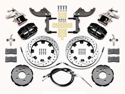 This system includes Black Calipers. Please see additional listing for Red Calipers. Installation of Wilwood Disc Brake Kits may affect the wheel offset and will require a larger diameter wheel for caliper clearance. All returned orders are subject to a re-stocking fee, so please make sure your wheels will work before ordering.  Shipping Promotions are valid in the Lower 48 States only.  For all other areas, please contact us for a discounted rate quote. OEM brake pad sensor is deactivated and Wilwood pads include wear slots for manual pad wear indication.