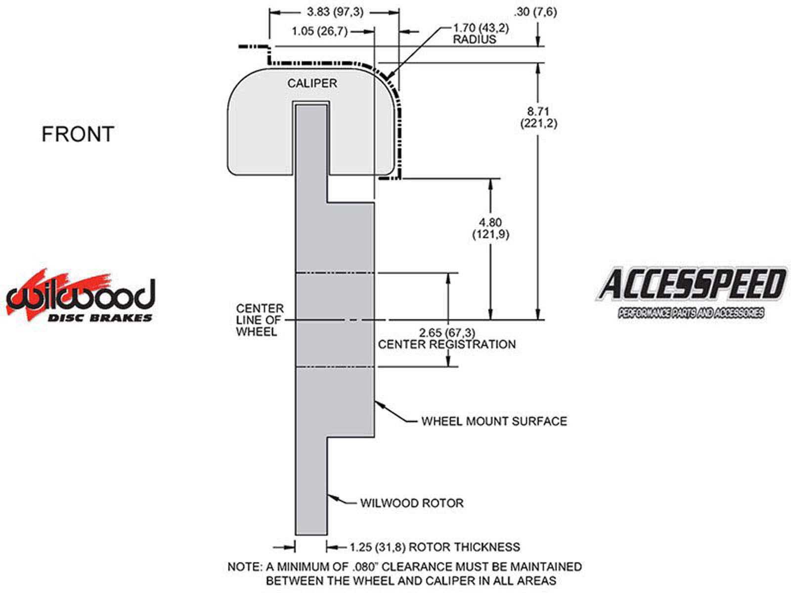 *This Brake Kit may require 19-inch or larger wheels or wheel spacers. Please refer to the wheel clearance diagram to check to see if it will fit your specific wheel.