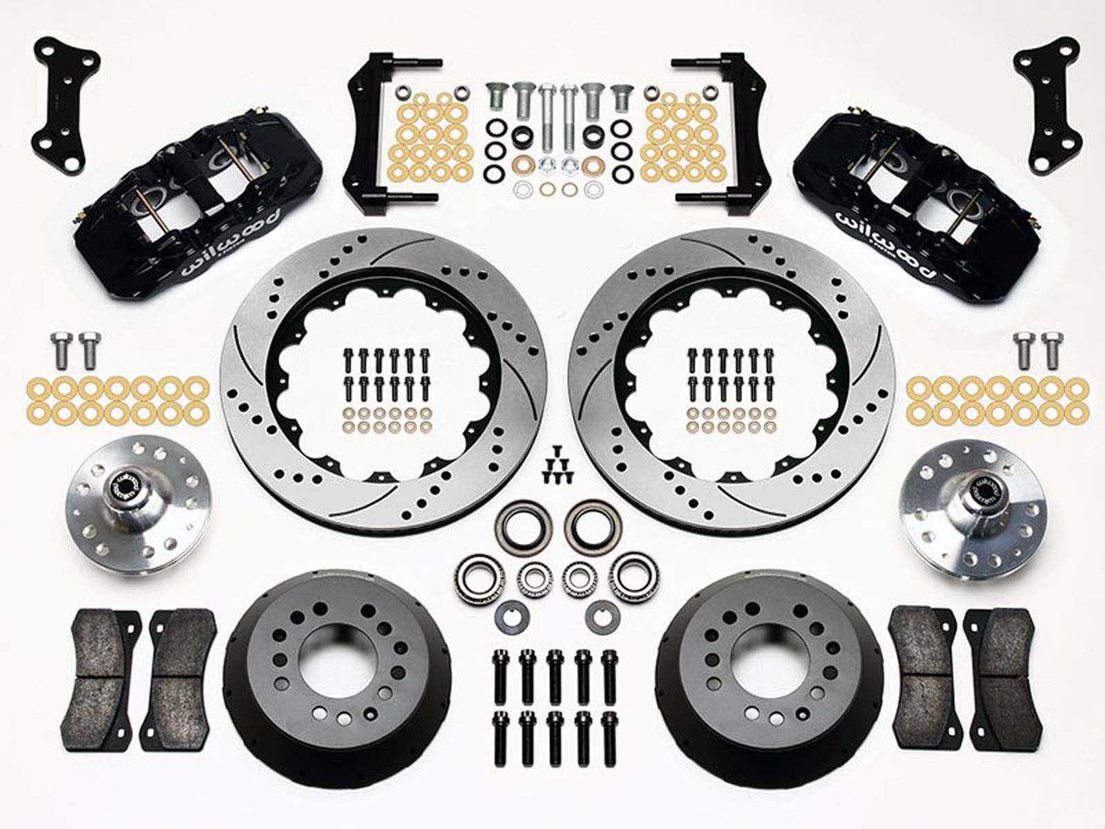Wilwood 140-15558-D Front 14" AERO6 Big Brake Kit With Hubs Black Calipers and Drilled Rotors, Fits 1955-1957 Chevy Cars With CPP 2" Drop Spindle