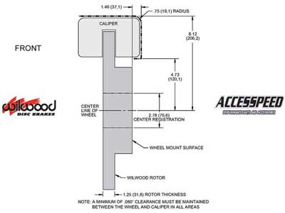 Black Calipers. See separate listing for the red caliper systems. Installation of Wilwood Disc Brake Kits may affect the wheel offset and will require a larger diameter wheel for caliper clearance. All returned orders are subject to a re-stocking fee, so please make sure your wheels will work before ordering. Shipping Promotions are valid in the Lower 48 States only. For all other areas, please contact us for a discounted rate quote.
