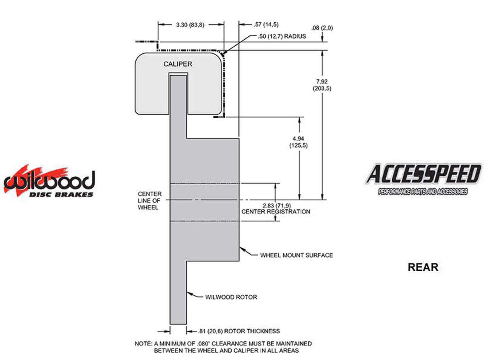 *This Brake Kit may require 18-inch or larger wheels or wheels spacers for proper fit. Please refer to the wheel clearance diagram image to check to see if it will fit your specific wheel.