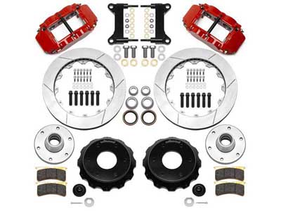 Red Calipers. See separate listing for the black caliper systems. Installation of Wilwood Disc Brake Kits may affect the wheel offset and will require a larger diameter wheel for caliper clearance. All returned orders are subject to a re-stocking fee, so please make sure your wheels will work before ordering. Shipping Promotions are valid in the Lower 48 States only. For all other areas, please contact us for a discounted rate quote.
