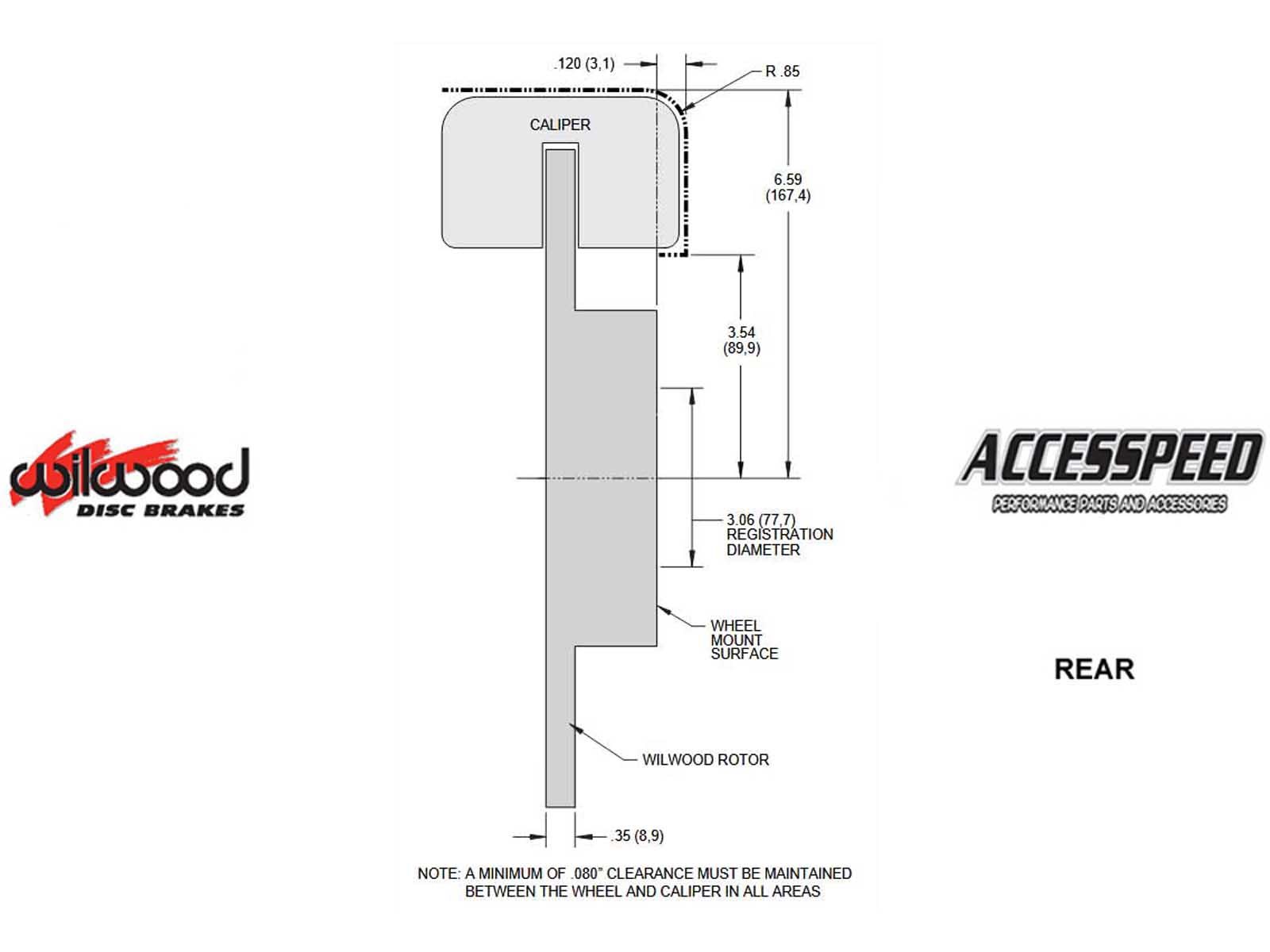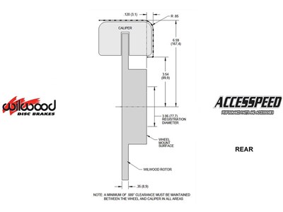 *This Brake Kit may require 15-inch or larger wheels. Please refer to the wheel clearance diagram image to verify caliper clearance for your specific wheel.