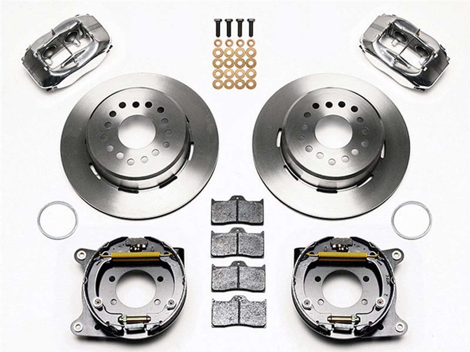 Wilwood’s Forged Dynalite Pro-Series rear disc big brake kits provide a complete solution for popular muscle car rear axles that require a parking brake. Forged billet Dynalite four piston calipers, 12.19" one-piece drum/rotors, and high friction pads provide optimized and balanced braking for all types of custom performance street/strip and show machines. The neatly hidden internal shoe system provides a clean installation with superior static holding power for parking. Optional caliper finishes and rotor designs enable the builder to personalize the style and optimize brake performance for every individual application. Requires Wilwood Flexline Brake Lines, sold separately.