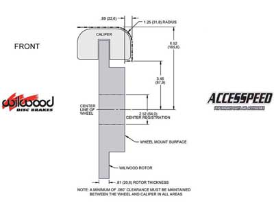 Red Calipers. See separate listing for the black caliper systems. Installation of Wilwood Disc Brake Kits may affect the wheel offset and will require a larger diameter wheel for caliper clearance. All returned orders are subject to a re-stocking fee, so please make sure your wheels will work before ordering. Shipping Promotions are valid in the Lower 48 States only.  For all other areas, please contact us for a discounted rate quote.
