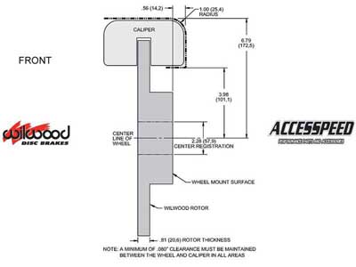 Red Calipers. See separate listing for the black caliper system. Installation of Wilwood Disc Brake Kits may affect the wheel offset and will require a larger diameter wheel for caliper clearance. All returned orders are subject to a re-stocking fee, so please make sure your wheels will work before ordering. Shipping Promotions are valid in the Lower 48 States only. For all other areas, please contact us for a discounted rate quote.