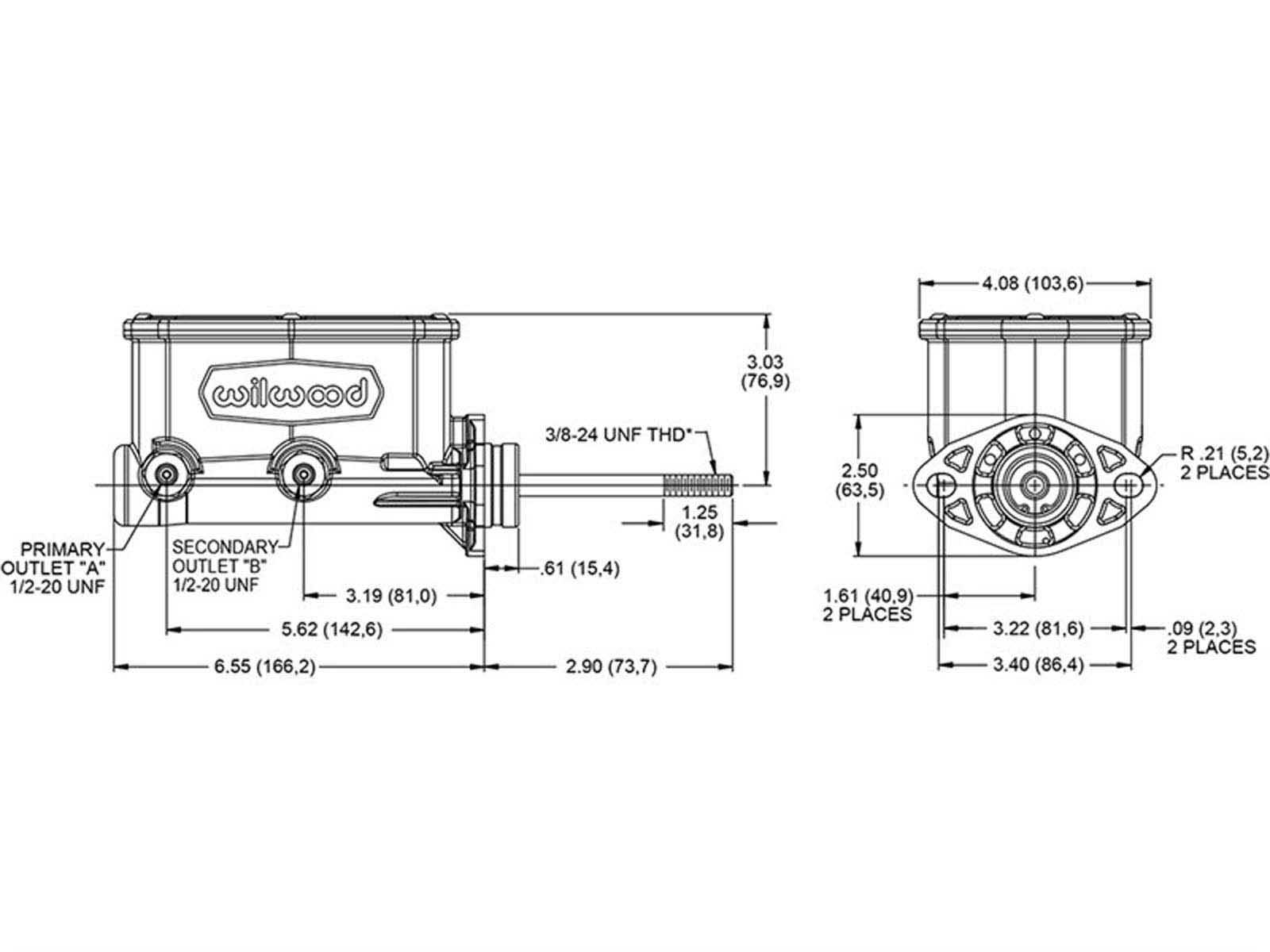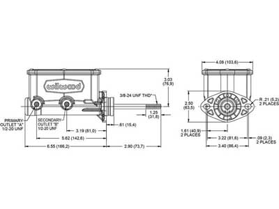 Machined from high-pressure die-cast aluminum, the Wilwood Compact Tandem Master Cylinder weighs just 3.25 lbs., more than 50% less than the cast-iron factory tandem unit. Despite the compact size, it has a full 1.10" stroke and the fluid volume needed for high-performance multi-piston calipers. Fluid outputs (1/2"-20 UNF) are provided on both sides of the bore. Plugs and fittings are included to accommodate 3/8"-24, 1/2"-20, and 9/16"-18 IF brake lines. Slotted mount flanges with 3.22" to 3.40" holes bolt right to the factory studs on the Corvette firewall and fit most other domestic cars and trucks from the era. Residual valves for drum brake cars and adjustable proportioning valves to dial in the brake bias are also available.