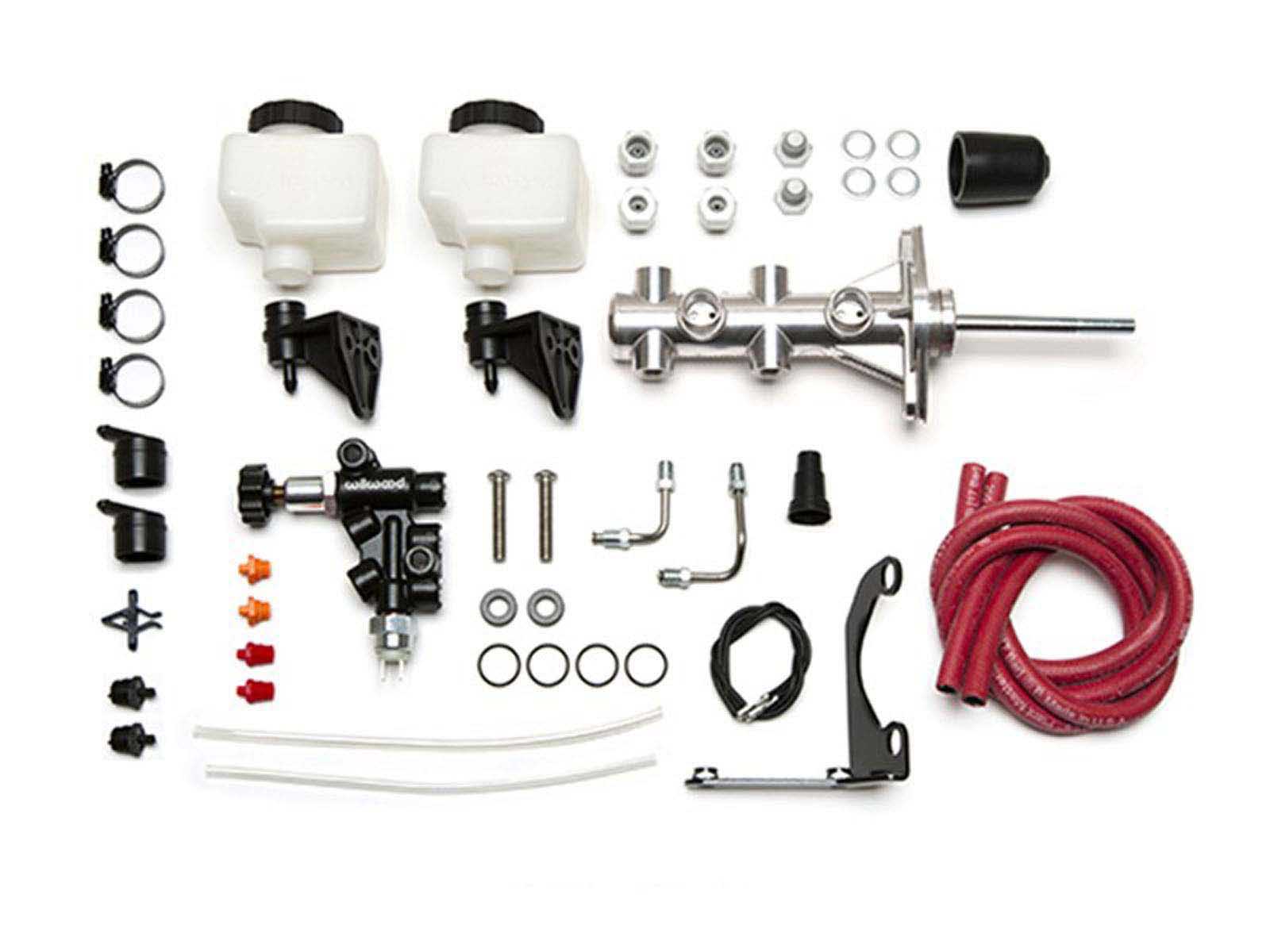 Wilwood 261-14250-P Remote Tandem Master Cylinder Kit W/Pushrod Bracket and Valve 15/16" Bore Silve |
