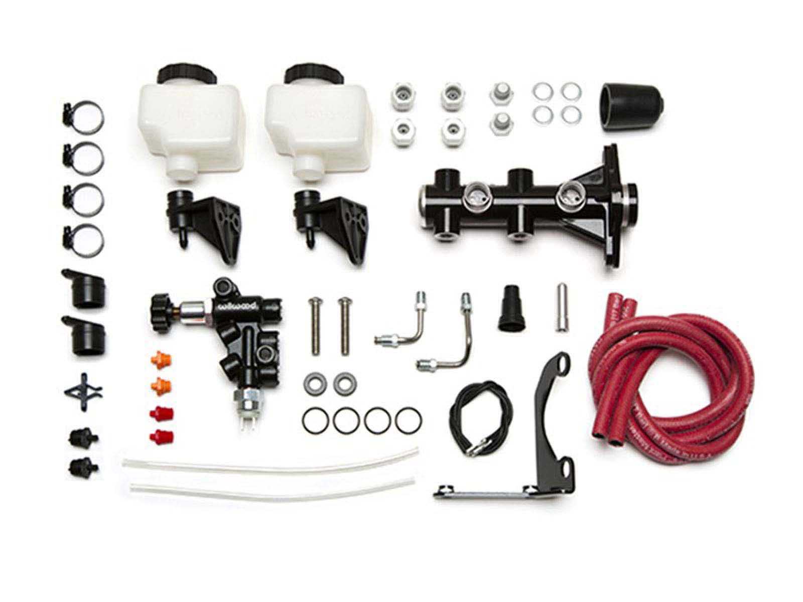 Wilwood 261-14252-BK Remote Tandem Master Cylinder Kit W/Bracket and Valve, 1.12" Bore, Black |