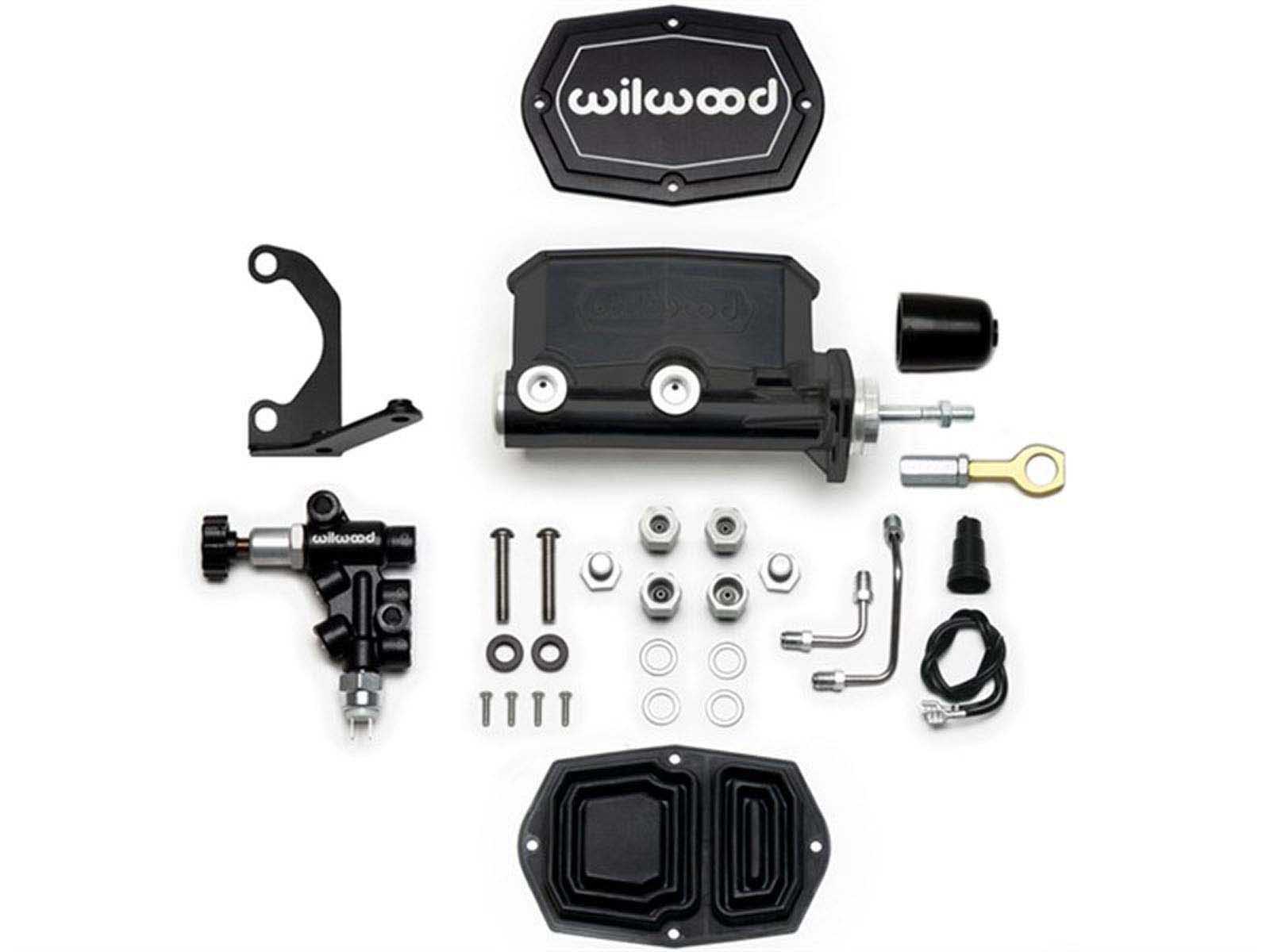 Wilwood 261-15666-BK Compact Tandem Master Cylinder With Proportioning Valve, Pushrod & Right-Hand Bracket, 1.12-inch Bore, Black E-Coat Finish, Fits 1964-1973 Ford Mustang