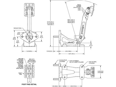 Wilwood 340-17698 Floor-Mount Pedal Assembly for Tandem Master Cylinder, 5.25-6:1 Adjustable Ratio |