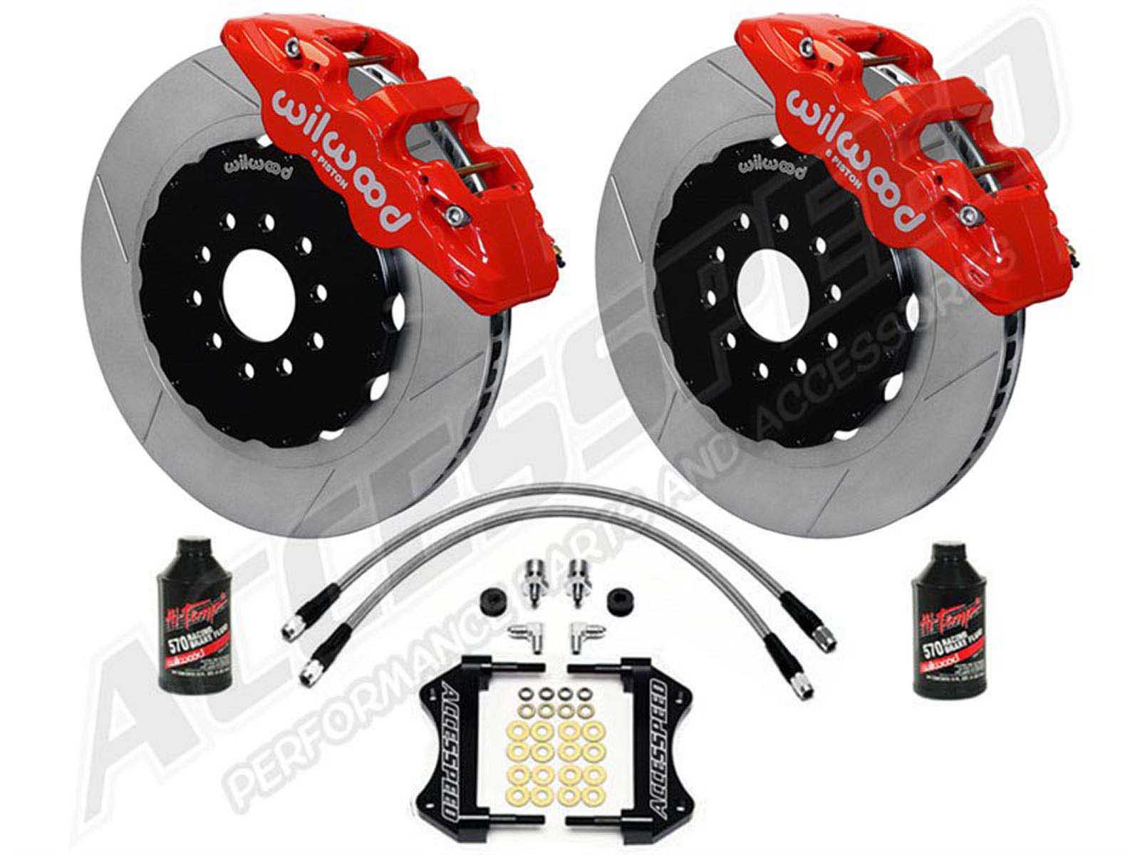 ACCESSPEED-WIL-BMW3F-07-A-R Wilwood AERO6 15" Front Big Brake Kit With Red Calipers, Slotted Rotors, Stainless Brake Lines & Brake Fluid 2007 2008 2009 2010 2011 2012 2013 BMW 3-Series