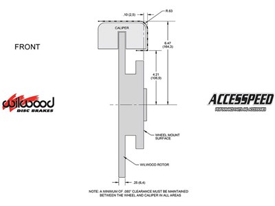 - Wilwood calipers offered in red and black powder coat, or 22 additional caliper color options from Accesspeed.