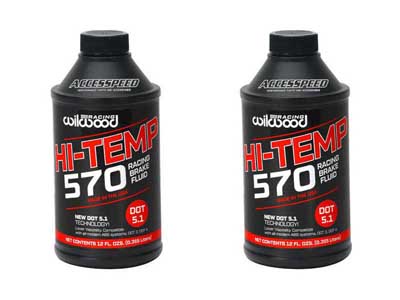 Wilwood’s specially formulated Hi-Temp° 570 Racing Brake Fluid has a minimum 570° F dry boiling point to withstand the severe heat requirements of automotive racing. Hi-Temp° 570’s low viscosity allows easy bleeding of your brake system, eliminating aeration of the brake fluid caused by foaming due to excessive pumping of the pedal. Hi-Temp° 570 comes in convenient 12-ounce containers hermetically sealed to guarantee against unwanted absorption of moisture which can drastically lower the fluids boiling point (fluid from larger containers tends to become contaminated with moisture, lowering its boiling point and making it unsuitable for racing applications).