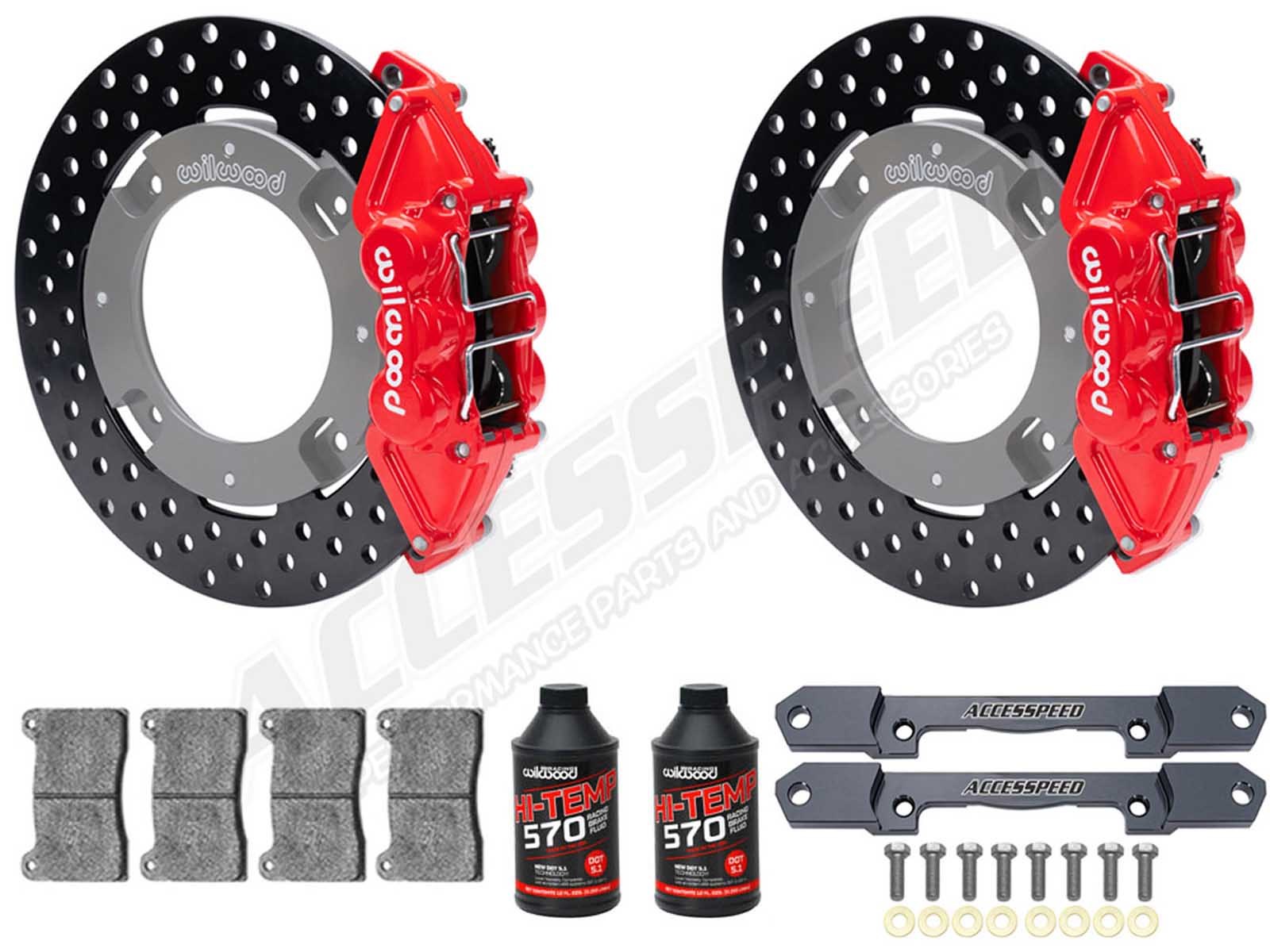 • Wilwood calipers offered in red and black powder coat, or 22 additional caliper color options from Accesspeed.