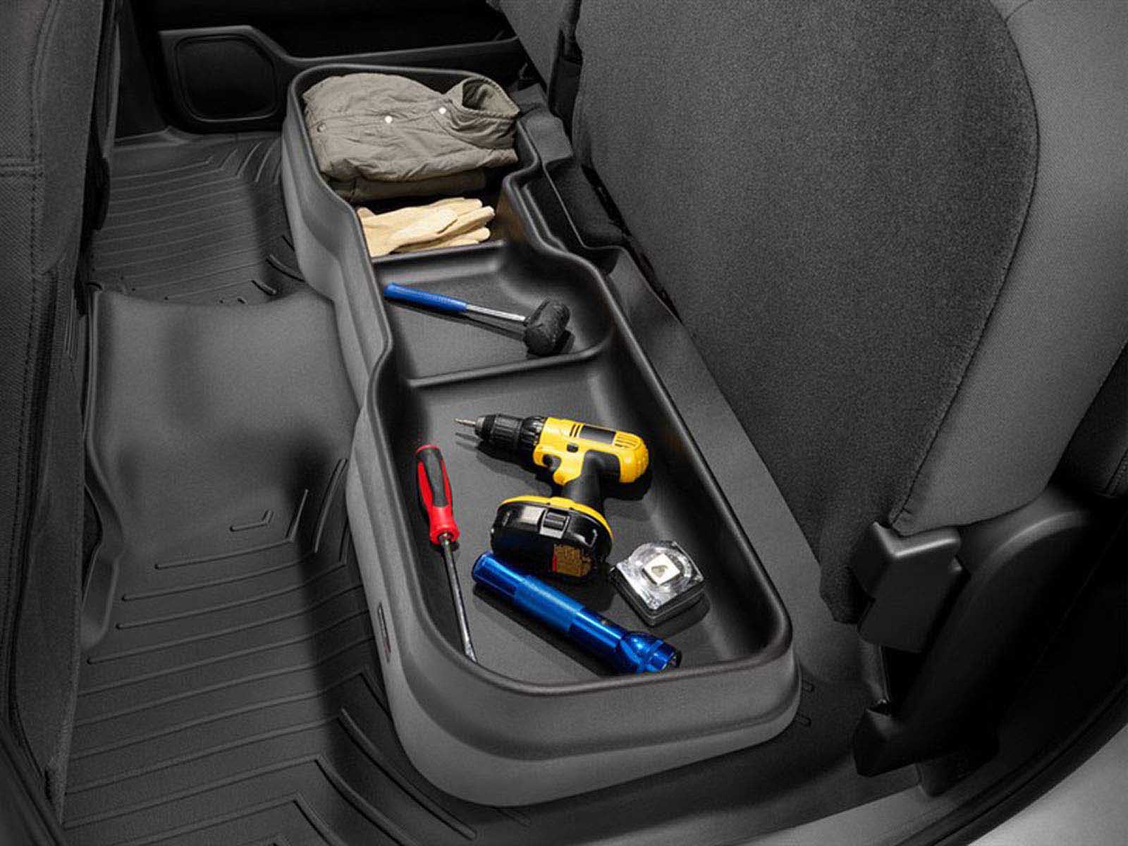 Made from a 100% recyclable and odorless thermoplastic elastomer; Under Seat Storage System is durable and chemical resistant. Custom-fit for each application, Under Seat Storage System securely fits the exact contours of each vehicle, and will not crack, break or warp in even the most extreme temperatures.